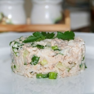 Dress the salad with 3 tablespoons of mayonnaise, season with salt and pepper, and mix everything thoroughly. Refrigerate for an hour.