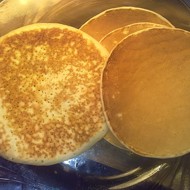 Cook on low heat. Watch your pancake closely; as soon as you see it covered with holes, you can flip it and wait a bit for it to brown on the other side.