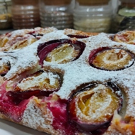 Arrange the remaining plums cut side up on top and sprinkle with sugar (just a couple of teaspoons, so the plums release juice and caramelize).
