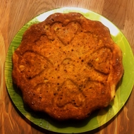 Melt the butter and gently mix it into the beaten eggs with sugar. Add the lemon zest, cinnamon, and ginger.