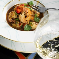 Place the shrimp with the sauce in a deep dish, garnish with cilantro leaves, and serve immediately.