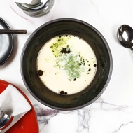 Season with salt and pepper, add lemon juice, then cream, and mix well. Pour the soup into bowls, garnish with dill, and drizzle with dill oil.
