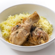 Serve the cooked chicken with your favorite side dish, such as rice. You can drizzle the side with a buttery sauce from the skillet.