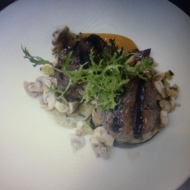 Season the piece of beef with salt. Heat a large skillet until the oil starts to shimmer. Add a few sprigs of thyme and sear the meat on all sides.