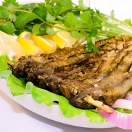 Coat the fish in flour and place it in a frying pan. Top with finely chopped onion and salt. Fry on both sides.