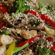 Cook the soba noodles in boiling water for 5-6 minutes.