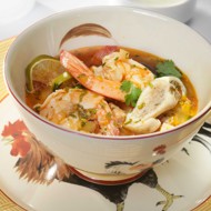 A hybrid of meat solanka and fish solanka with the addition of flavors not known in Soviet cuisine — the acidity and spiciness of lemongrass and tom yum paste.