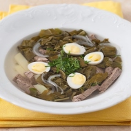 Cut the sorrel into strips 2 cm wide, add to the soup; add lemon juice.