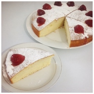 Beat the eggs with sugar using a whisk at high speed until fluffy. While continuing to whisk, add the melted butter, sour cream, baking powder, and sifted flour. Continue whisking for 1–2 minutes until the mixture is smooth.