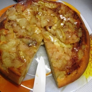 Grease a baking dish with butter. Transfer the apples to the dish, pour the batter on top, and place it in a preheated oven at 356°F. Bake for 30 minutes, let it cool, and then invert. You can sprinkle powdered sugar on top, but in my opinion, it’s unnecessary.