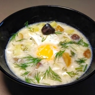 Mix the sour cream with the flour, pour in the cooled broth, mix again, and pour into the pot.