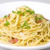 Drain the spaghetti and transfer it to the pan with guanciale, add a little of the cooking water, the egg and cheese mixture, and mix everything thoroughly. Serve the pasta immediately, sprinkled with grated Parmesan and Pecorino Romano.