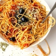 Add the sauce to the pasta and mix thoroughly, then add the chopped parsley.