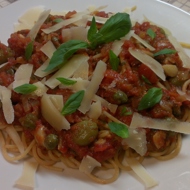 Spaghetti alla Puttanesca with Tomatoes and Anchovies