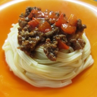 While the spaghetti is cooking, lightly sauté the ground beef in olive oil with the addition of wine, allowing it to evaporate.