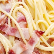 Cook the spaghetti, drain it, and then add it to the pot with the pork. Keep on high heat for about 30 seconds, stirring constantly. Turn off the heat, pour in the beaten eggs, and add half of the grated cheese.
