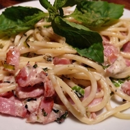 Spaghetti with Bacon in Cheese Sauce