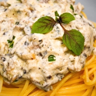 Spaghetti with Creamy Blue Cheese Mushroom Sauce