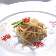 Spaghetti with Orange Zest, Cream Sauce, and Red Caviar