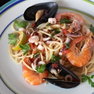 In the photo, there is onion among the ingredients, but I decided to omit it from the recipe. I only used salt for boiling the pasta. The mussels have enough salt as it is. If it comes to broth, it almost always contains salt too. Danger lurks everywhere. I sprinkled freshly ground black pepper at the table.