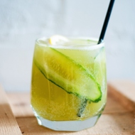 Mix the sugar syrup with the lemon and cucumber juices. Stir everything together, pour into glasses, top with sparkling water, add ice, and serve.