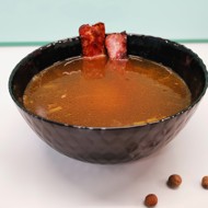 Pour water over the base for the broth and place it on high heat. Once it boils, reduce the heat.