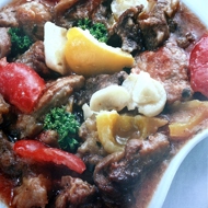 Wash the meat, cut it into pieces, fry in vegetable oil, pour boiling water over it until the water covers the meat by two fingers, and simmer on low heat.