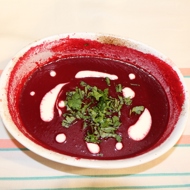 A sweet and spicy soup with sour cream and cilantro — a very interesting taste! Great for cold weather.