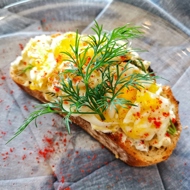 Mix the mixture and spread it over the bread. Top with dill.