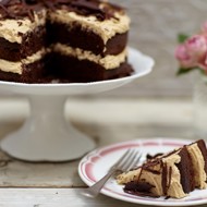 Spread two-thirds of the mixture over one cake layer, place the second layer on top, then add the remaining mixture. Top with grated chocolate.