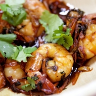 Next, add the chili, garlic, and shrimp. Stir everything a few times.