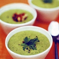 Using a blender or mixer, puree the soup. Add the rice wine or dry sherry, then season to taste with salt and pepper. Bring to a boil.