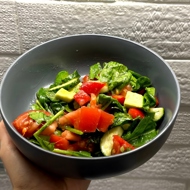Spinach Salad with Vegetables and Avocado with Honey Dressing