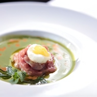 Spinach Soup with Veal Tartare