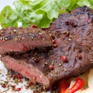 Rinse the piece of beef tenderloin, trim off the tendons, shape it with a knife (but do not pound it), season with salt, sprinkle with pepper, place it on a metal spit, and roast over hot coals (without flames) for about 10 minutes.