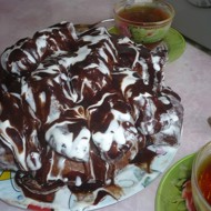 Glaze: Mix 4 tablespoons of sugar with 4 teaspoons of cocoa powder. Add softened butter, then 4 tablespoons of water or milk, bring to a boil, and let cool.