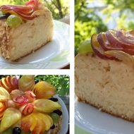 Assemble the cake and decorate as desired. I decorated it with fruits and almonds. To prevent the fruits from browning, they should be coated (I brushed them) with jelly.