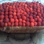 Once the sponge has cooled, cut it into 2 layers and spread jam on top. Also spread jam on the top and arrange fresh raspberries.