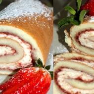 Sponge Roll with Strawberry Jam and Whipped Cream