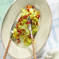 A seasonal version of the classic Sicilian vegetable dish — without tomatoes and eggplants, but featuring the same bold mix of sour, salty, and sweet flavors.
