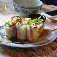 Spring Rolls with Cold Chicken Skewers