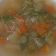 Add the potatoes to the pot with cold broth. When the water starts to boil, add the carrot, onion, zucchini, pumpkin, asparagus, and lastly, the peas. Once the vegetables are cooked, add the vermicelli, season with salt, and before turning off the heat, add the cheese and stir.