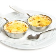 Then transfer the mixture to molds, generously sprinkle with grated cheese, and bake in the oven at 356°F for about 25 minutes.