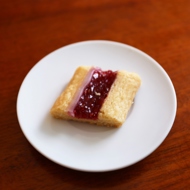 Apply the glaze along its entire length next to the jam. You can use a piping bag for this. Cut into squares and allow them to cool on a wire rack.