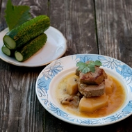 Stew with Potatoes in a Cauldron