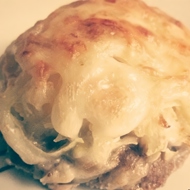 Top with a layer of sautéed onions. Then add a layer of boiled and chopped eggs.