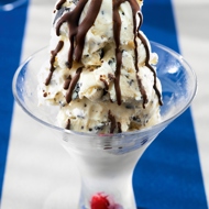 Scoop the prepared ice cream into dessert cups and serve.