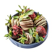 All you need is two bars of chocolate, dark and white, a basket of fresh strawberries, and a microwave. Melting chocolate in the microwave is a breeze; then all you have to do is dip the berries: first in one chocolate, then in the other, creating a stunning marbled effect on the strawberries. This recipe features freeze-dried raspberries, which are easy to find on any marketplace, but you can also substitute them with shredded coconut or almond flakes, which are even easier to find.