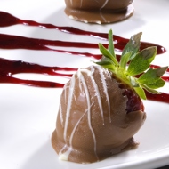 Holding by the stems, dip the berries in the chocolate and place them on the baking sheet. Leave until hardened.
