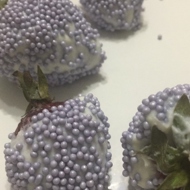 Holding the berries by the stems, dip them in the cream, then roll them in the decorative toppings.